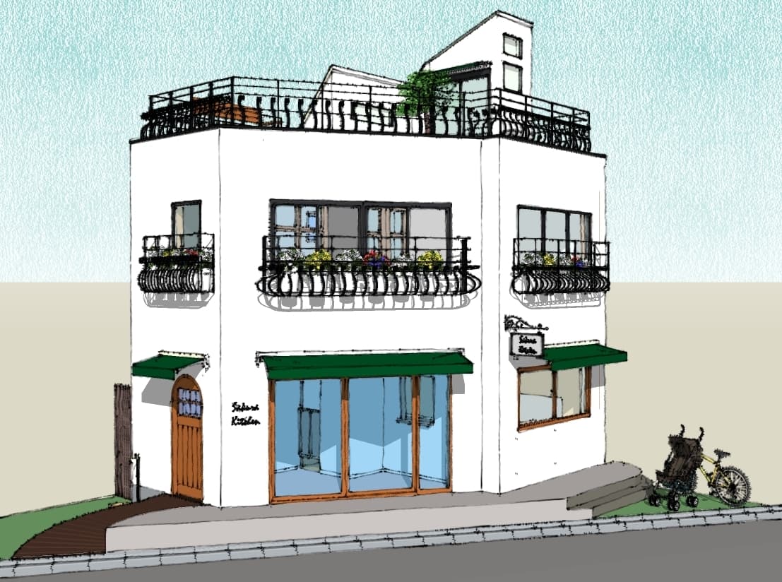 厨房の位置から、座席レイアウト お客様がイメージしやすいように、パースや分かりやすい図面を共有しながら進めます。ロゴデザインや看板や暖簾まで、なんでもご相談ください。